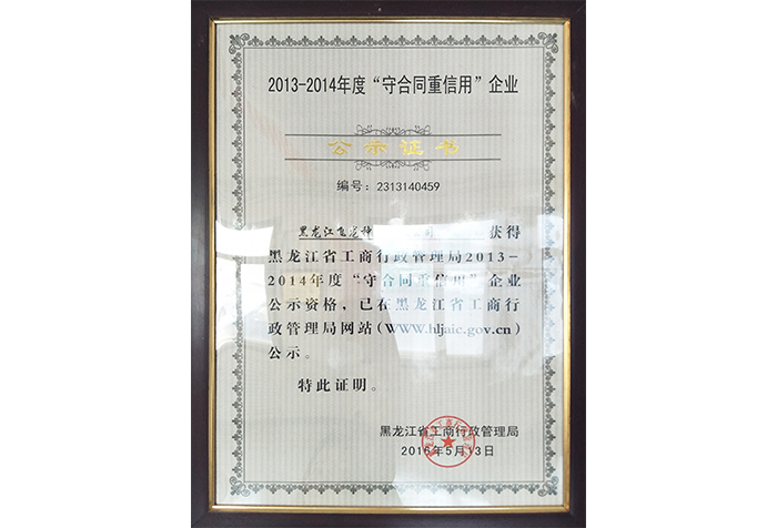 2011-2012年雙鴨山市守合同重信用企業(yè)